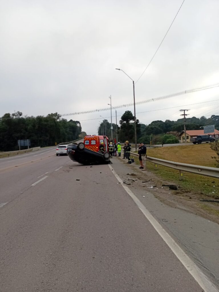 Colisão seguida de capotamento mobiliza equipes de resgate na BR-116 em Mafra