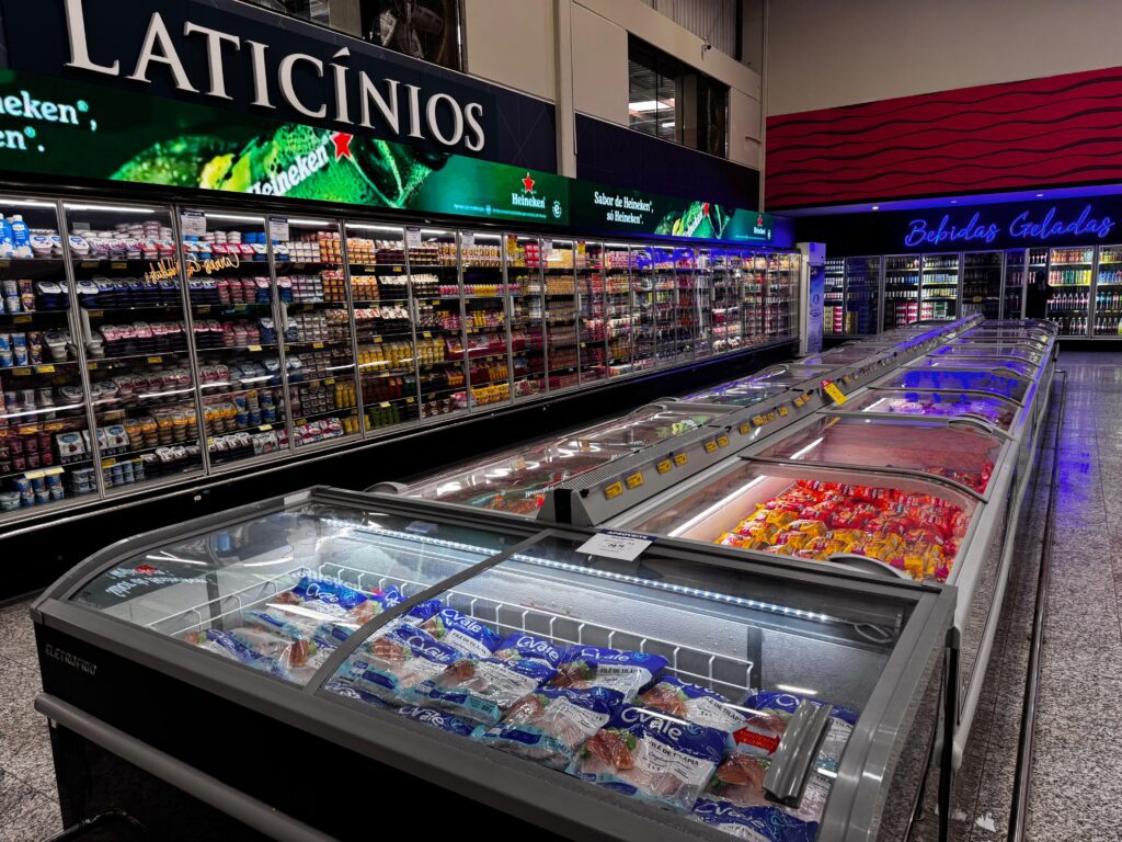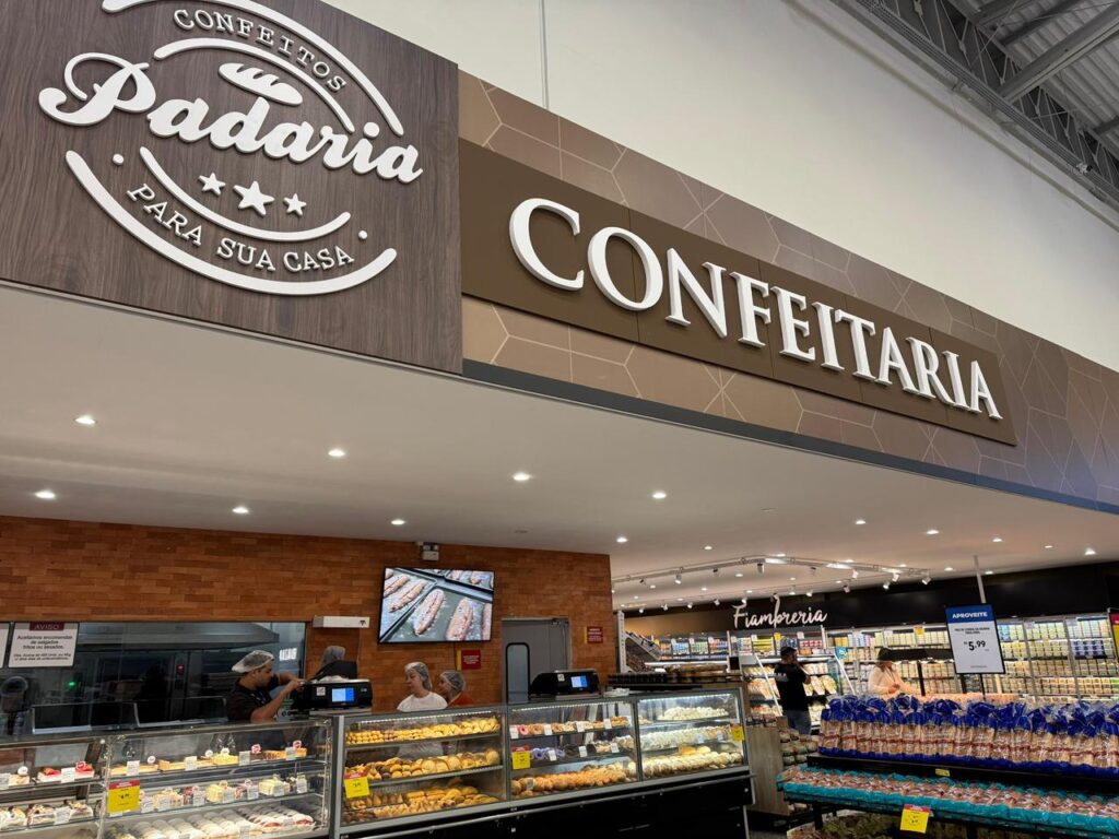 A organização dos setores segue a mesma lógica estratégica da comunicação visual, com o objetivo de otimizar o trajeto do cliente e tornar a compra mais prática e fluida.