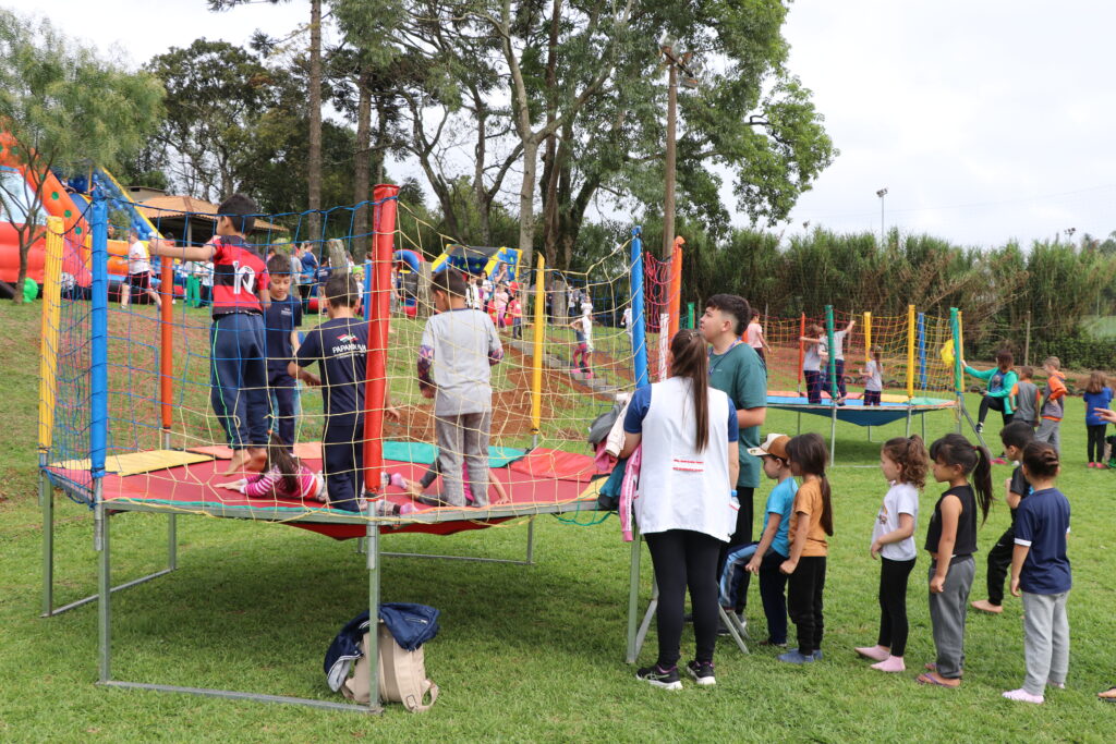 O encontro reuniu todas as crianças das escolas municipais, que viveram um dia repleto de brincadeiras, descontração e encantamento. O espaço da AABB, cedido gentilmente pelo Banco do Brasil, foi transformado em um verdadeiro parque de diversão, com uma estrutura preparada com muito carinho para acolher os pequenos.