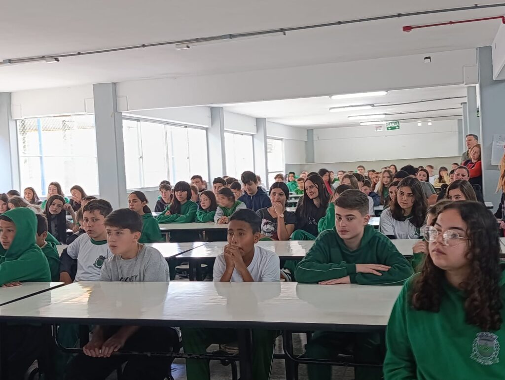 No dia 22 de outubro, alunos do 8º ano da EMEB Paulo Fuckner, da localidade de Bateias de Cima, participaram como palestrantes do Ciclo de Palestras sobre Empreendedorismo da Rede Municipal de Educação, realizado na EMEB Maria José Duarte Silva Bernardes.