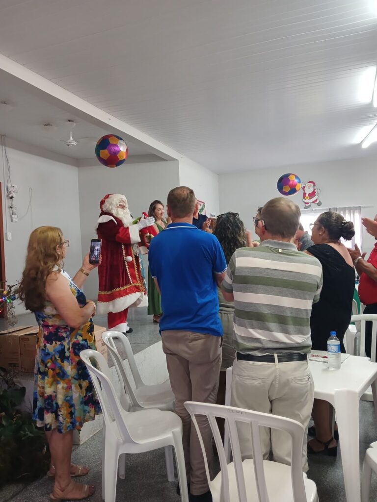 Um dos momentos mais aguardados do evento foi a presença do Papai Noel, que circulou pelo parque distribuindo chocolates para crianças e idosos, levando sorrisos, carinho e reforçando o espírito natalino entre o público presente.
