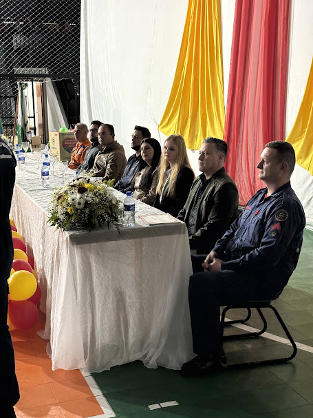 A formatura contou ainda com apresentações dos mascotes Ice, Manu e Hunter, entrega de prêmios e brindes aos alunos e o tradicional “batismo” com o caminhão de combate a incêndio do CBMSC, encerrando o evento de forma festiva.