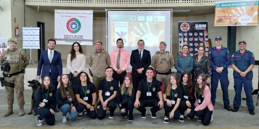Na quarta 18, semana que antecede o Dia Internacional de Combate às Drogas, o município de Papanduva (SC) foi palco da Palestra de Prevenção e Combate às Drogas. A ação, organizada pela Polícia Militar, Comissão OAB Vai à Escola, Corpo de Bombeiros Militar, Prefeitura Municipal de Papanduva, Poder Judiciário de Santa Catarina e MPSC